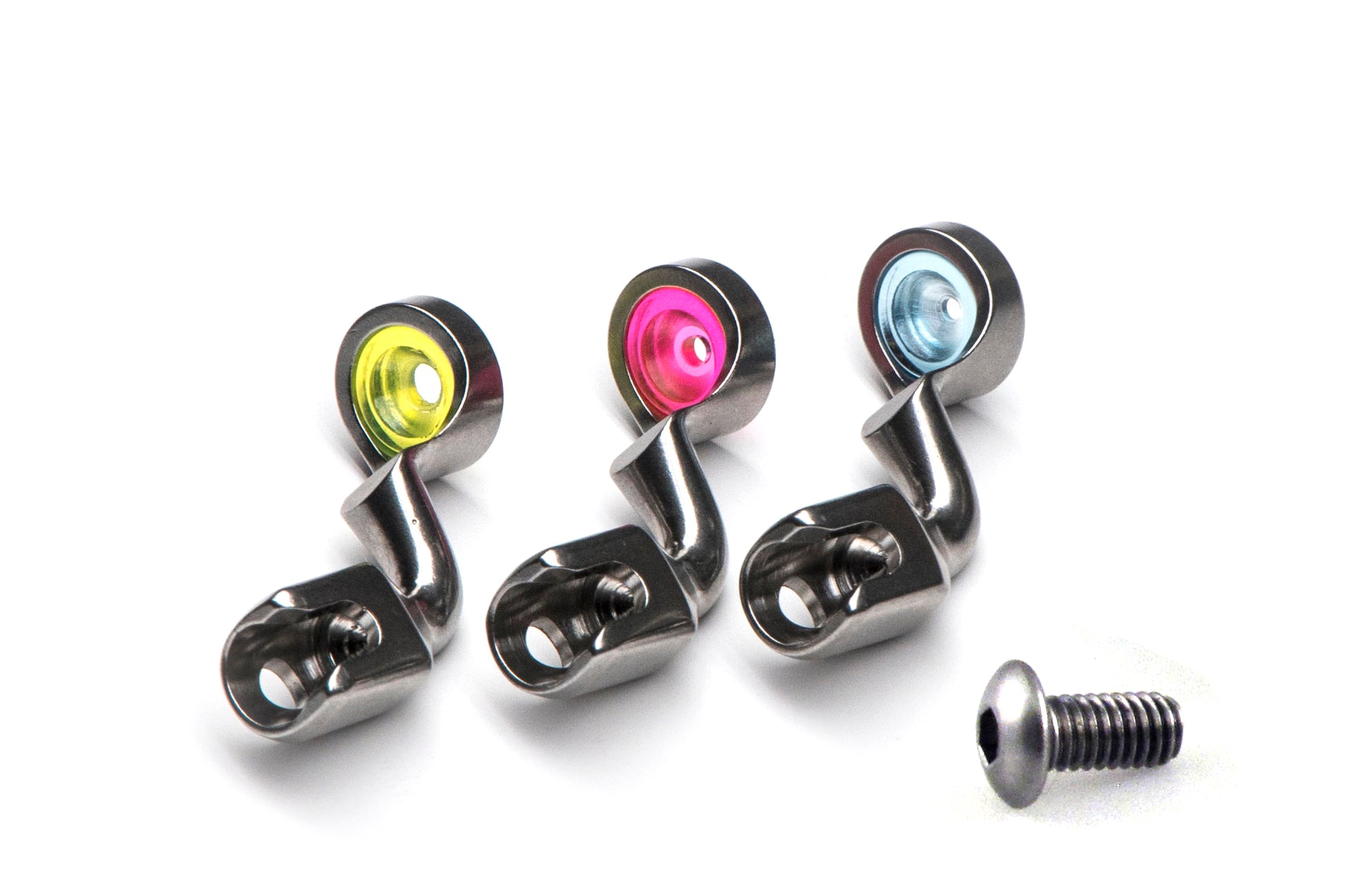 The Handi Feet Couching Kit includes three sizes of interchangeable couching feet: 1.5mm (blue), 2mm (pink), and 3mm (yellow). With three sizes to choose from, you will always have just the right size foot for adding couched embellishments using a variety of specialty threads, fibers, and yarns to your quilt. Compatible with all HQ machines with Interchangeable Foot Mount.